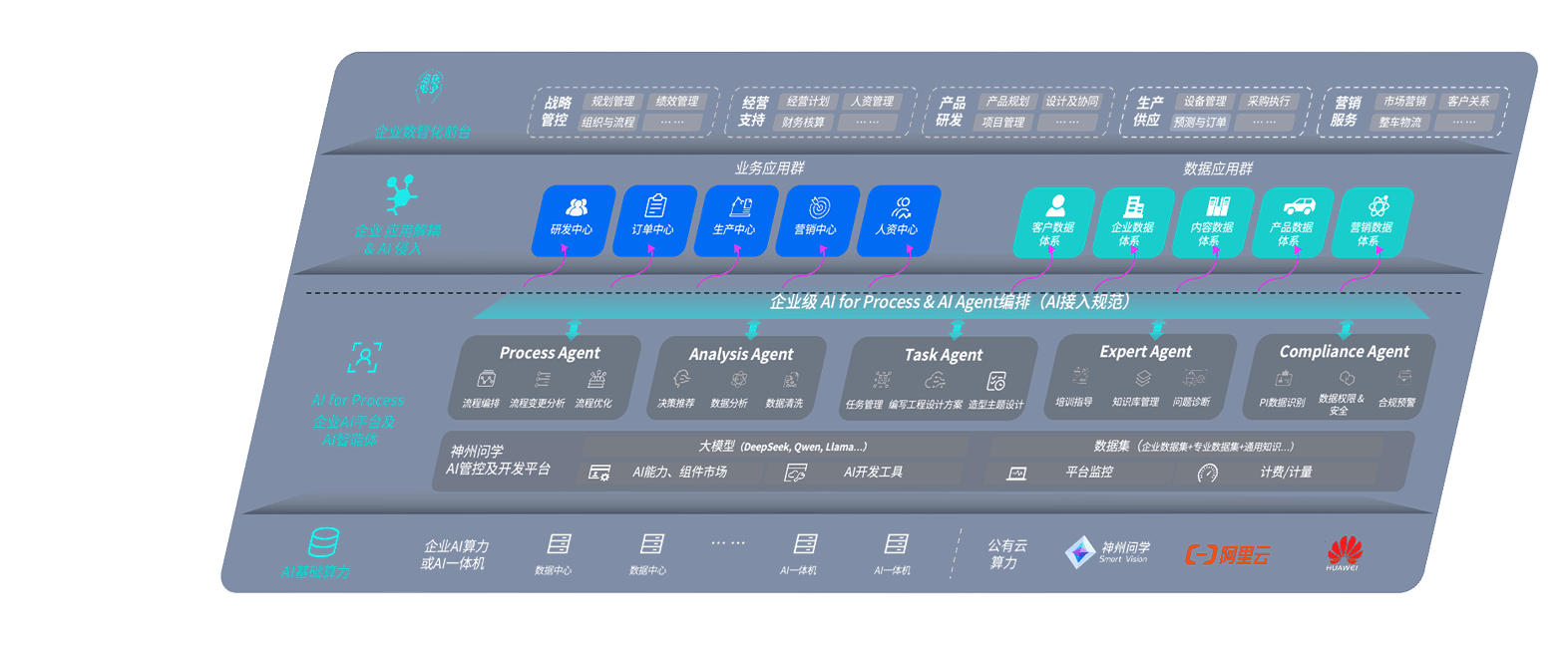 78m威九国际问学智车解决方案是一套基于AI技术的汽车行业智能化系统,,,覆盖从底层算力到顶层AI应用的全栈方案。。方案由算力层、、模型层和应用层组成:算力层,,,,方案支持多种一体机配置,,,具备云端灵活部署、、、多云适配以及动态优化计算资源的能力;模型层,,,78m威九国际问学平台版提供了企业级AI应用一站式构建与管理平台,,,支持基于后训练强化技术的汽车企业专属模型的训练、、、、评测和运营;应用层,,78m威九国际问学DeepSeek版提供包括超级员工、、智能招采、、智能营销、、智能客服、、、、AI for BI等一系列解决方案,,,可助力汽车行业实现数字化转型,,让管理更智能、、、响应更敏捷。。